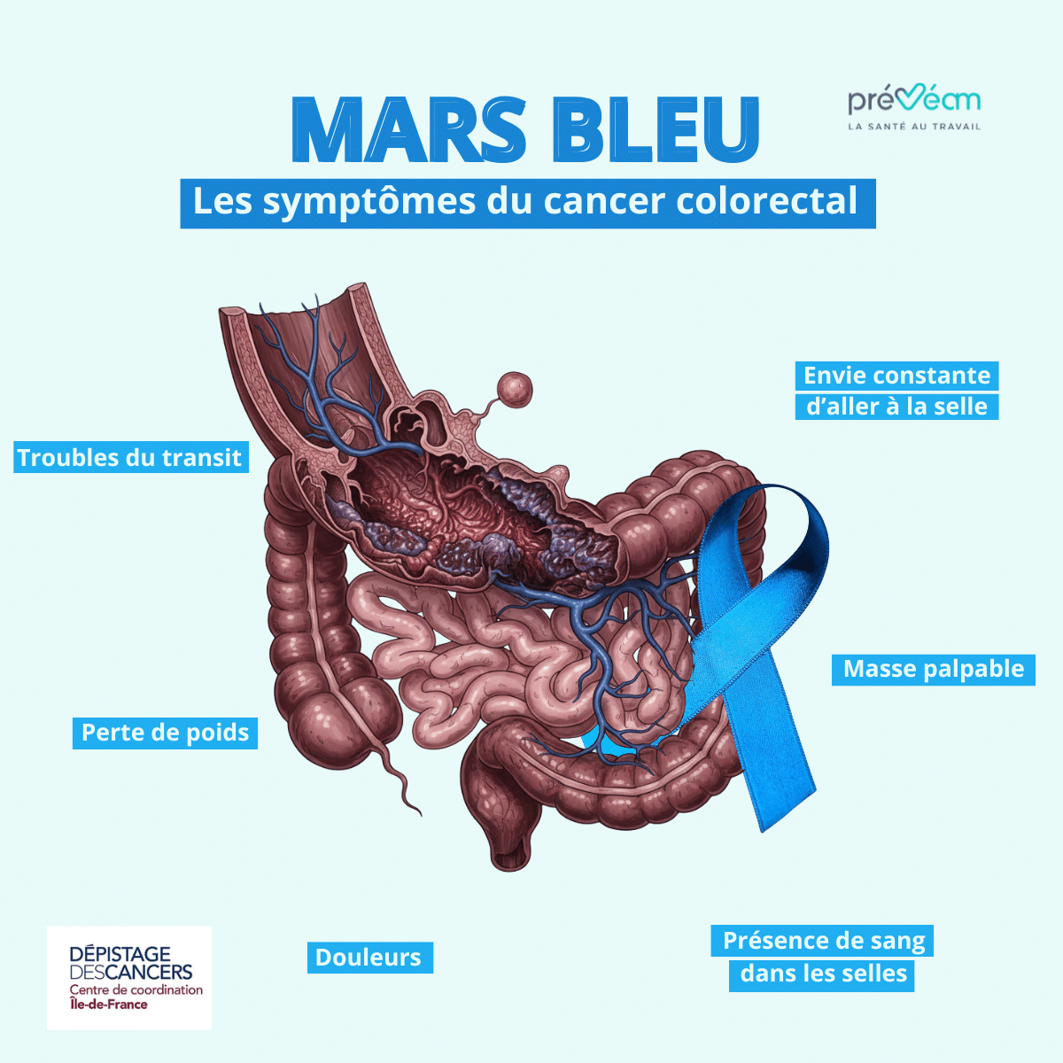 À l’occasion de Mars Bleu, Préveam s’engage pleinement dans la lutte contre le cancer colorectal en relayant cette campagne de sensibilisation.